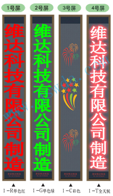 v型系列:高1.74米(192點),寬0.20米(16點),單行顯示,常用字數(shù)不超過14個字. |