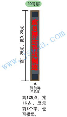 高1.28米(128點),寬0.20米(16點),顯示前8個字,也可橫顯 |